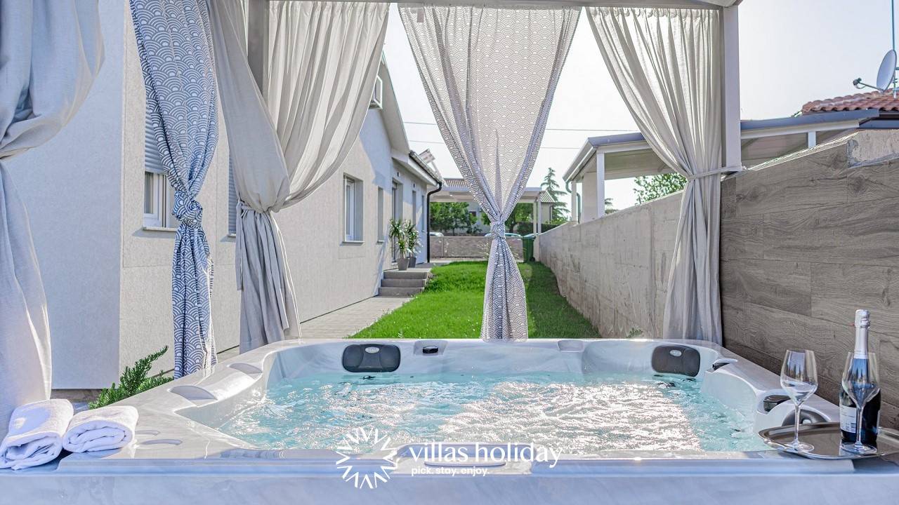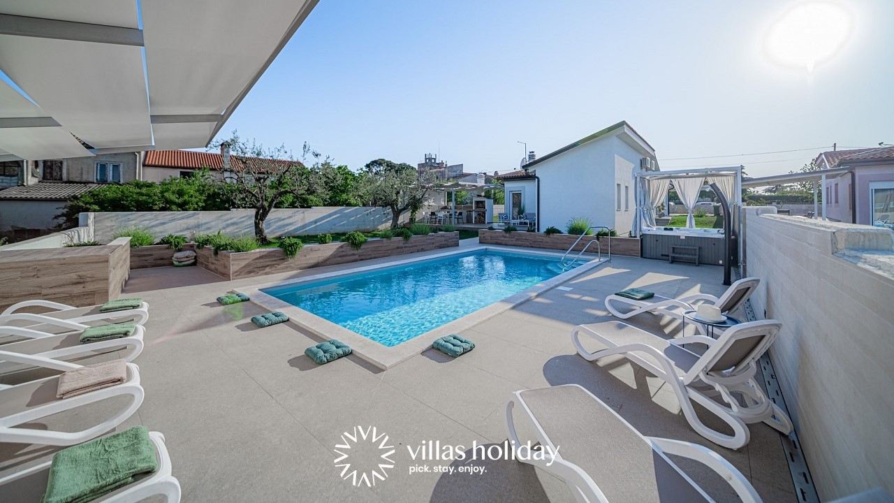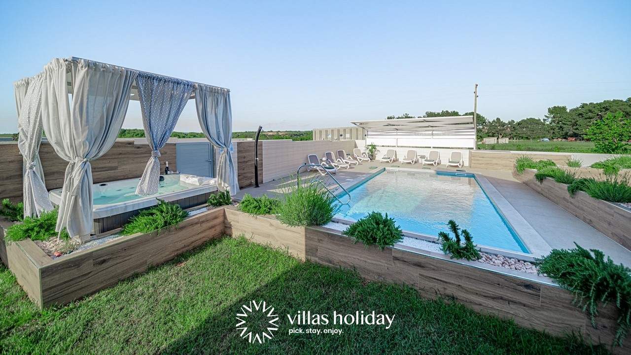 Entspannen Sie und laden Sie Ihre Akkus in der stylischen Villa Salvela mit Pool und Jacuzzi in einer ruhigen Gegend in Novigrad, nordwestliches Istrien auf!