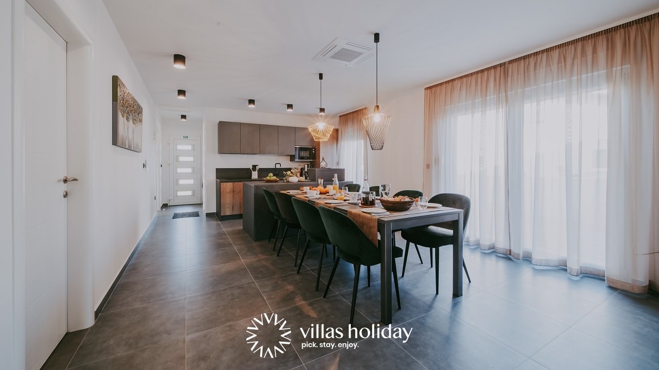 Die moderne Villa liegt sehr angenehm in Novigrad, einer bunten Stadt an der nordwestlichen Küste Istriens. Der Strand und Istralandia sind in der Nähe, innerhalb einer Distanz von wenigen Kilometern. Ähnlich wie Poreč und bezaubernde Hügelstädte im Interland, die einfach zu erreichen sind. Die kroatisch-slowenische Staatsgrenze ist weniger als 20 Kilometer entfernt, während die nächst gelegenen Flughäfen in Pula (70 km) und in Italien (Triest, 95 km) sind.