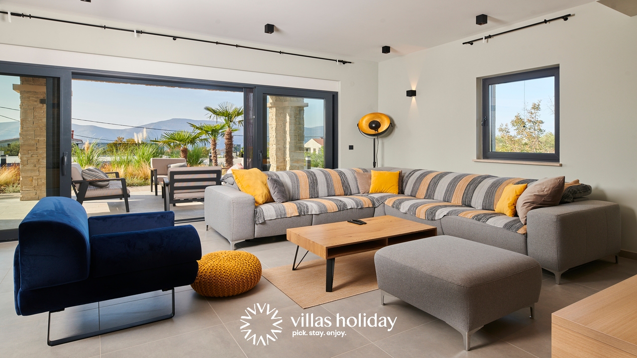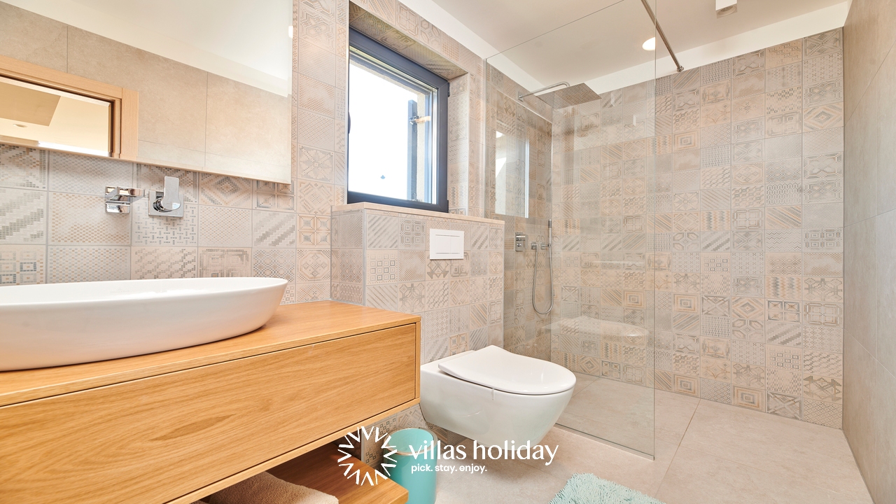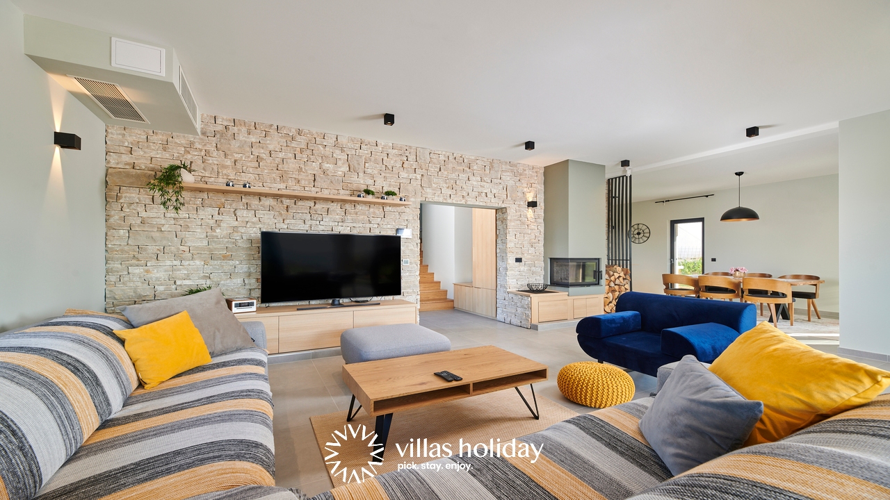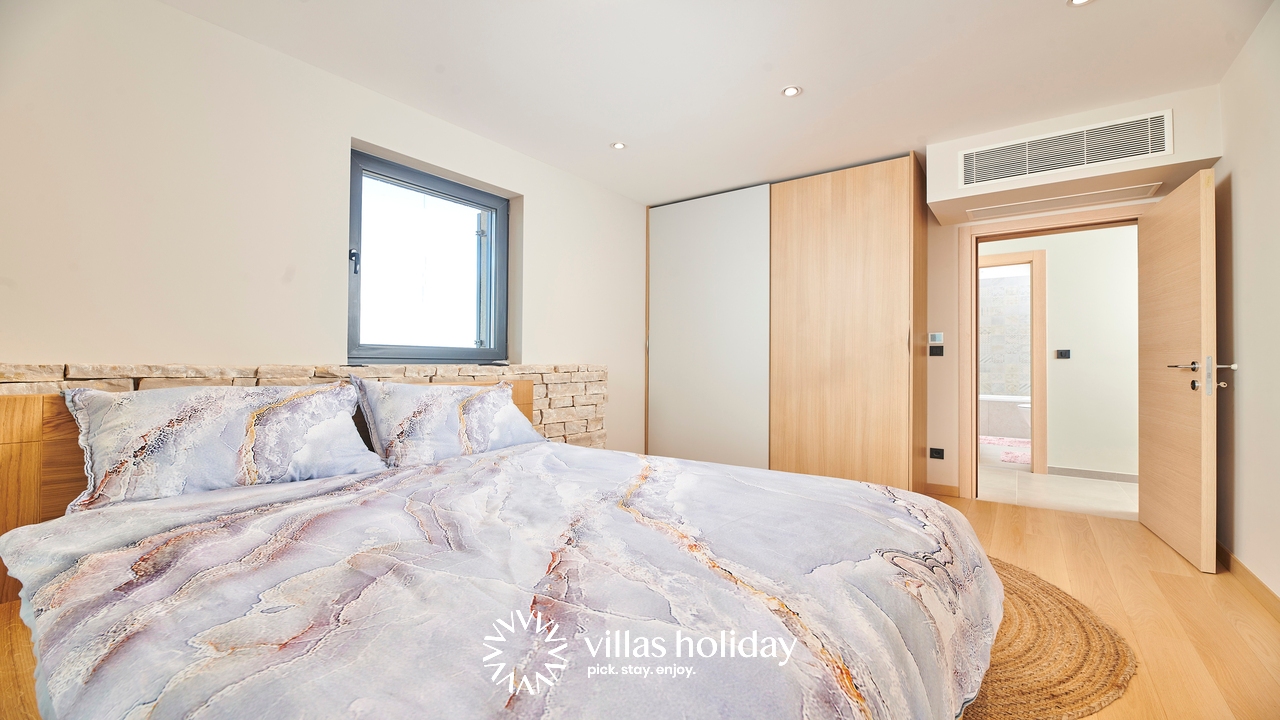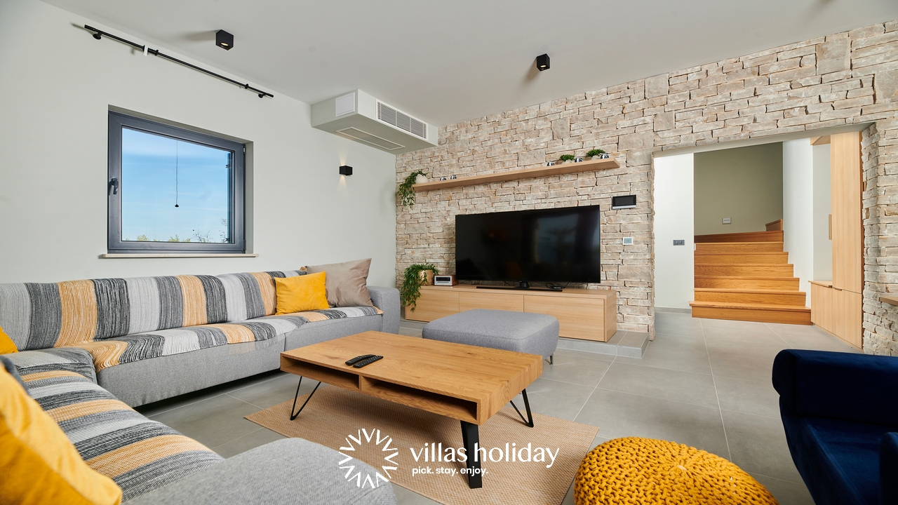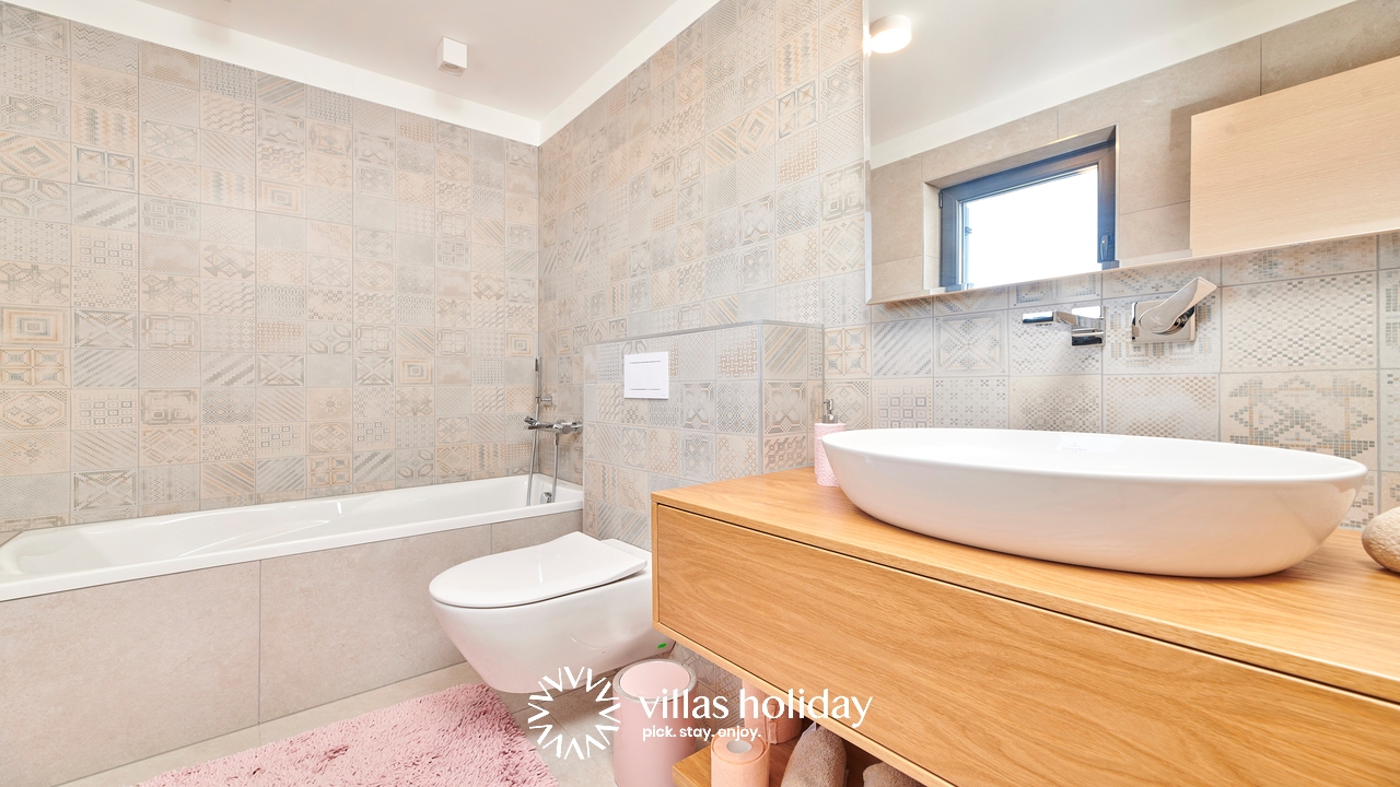 The charming 3-bedroom villa spreads over two floors providing you with the best of modern design and a cozy home feeling, creating the ideal atmosphere for your holiday. The main floor of the house is an open concept that gives you an unobstructed passage from the kitchen all the way to the outdoor area with a swimming pool. A modern kitchen is at your disposal to prepare delicious meals that can be served on the spacious dining table. And the living room, always ready to host you for an afternoon rest, is just a step away.
