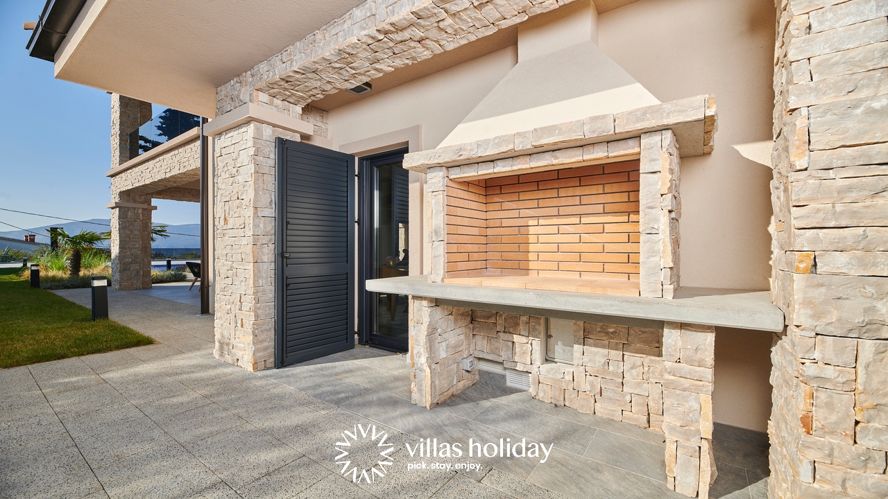 Villa Brzac is located in the small village of Brzac only a 20-minute drive from Malinska, on the island of Krk. There are local restaurants nearby where you can taste typical island cuisine. If you want to swim in the Adriatic Sea, the nearest beach is only a 5-minute walk away. The Croatian-Slovenian border is 78 km away, while the Rijeka Airport in Omišalj is only 28 km away.